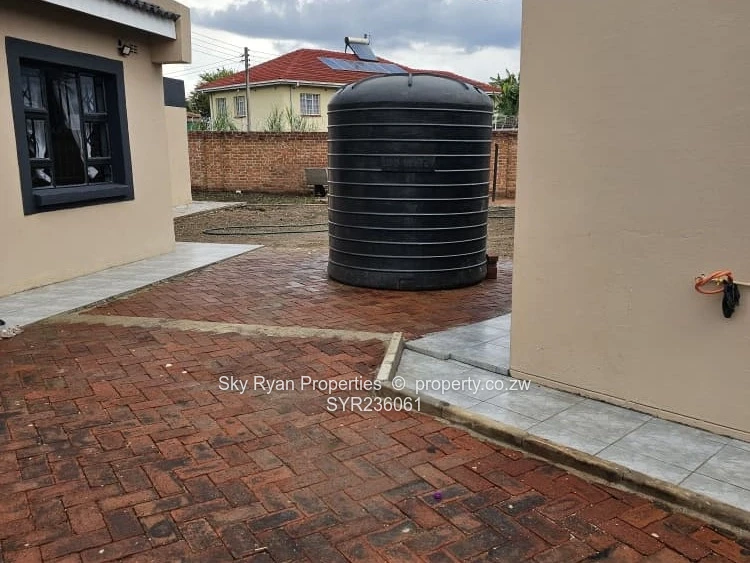 Solid 3 bed home sitting on 1000sqm. Ensuite, common bathroom and toilet, dining, lounge, modern fitted kitchen with fitted stove,ceiling bic,tank,borehole, razor wire,5kv solar system.