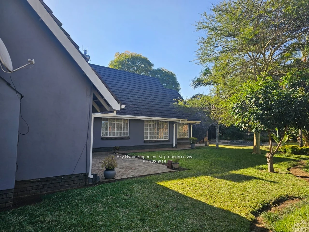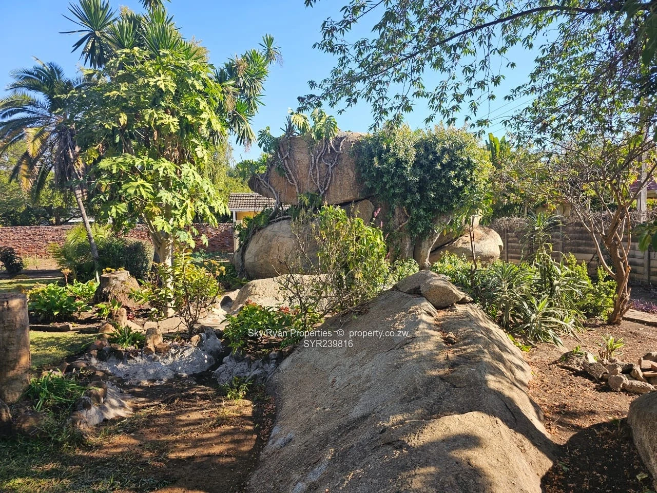 discover the property's crown jewel outside, a sprawling, meticulously, breath taking landscaped garden, lots of trees offering a braai area with concrete benches, functional swimming pool with a sunbusking area, charming gazebo that can be a bar area, most part of the yard is surrounded by lushy greenery. The property is a few metres from harare drive and borrowdale rd.